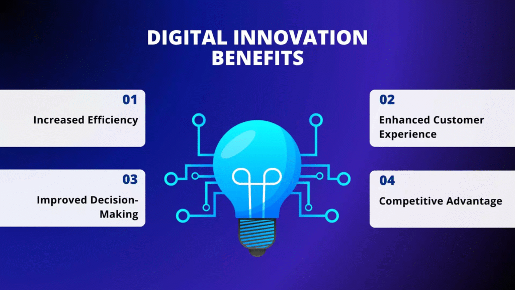 - What’s the Benefit : When you embrace digital innovation, you stay one step ahead of your competitors. Most customers shop online these days, and businesses that utilize digital platforms effectively are able to reach more customers.